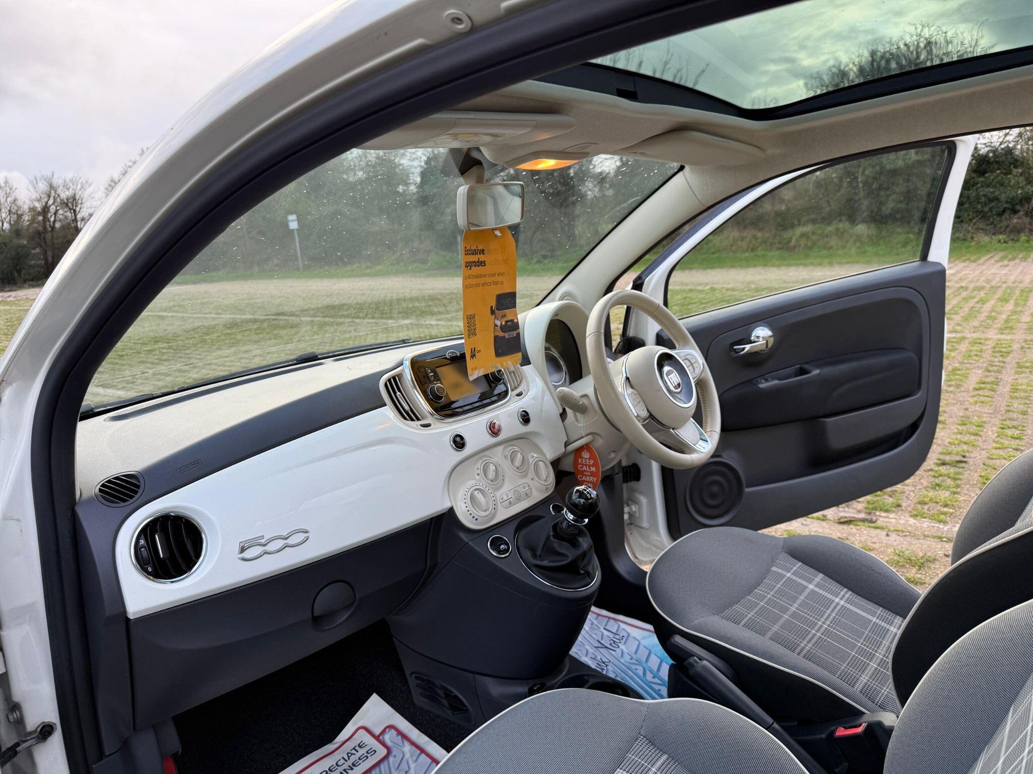A very clean Fiat 500 Lounge with sunroof, part leather and media connectivity.